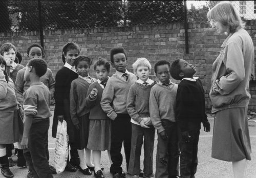 School Children Linning Up With Teacher Harlsden London 1980 Ties